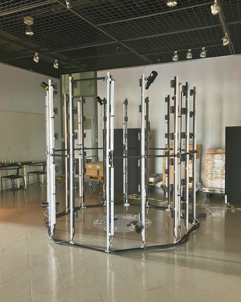 360度3Dスキャナーの中央でポーズを取っていただき、一度にあらゆる角度から撮影します。その撮影データを元に、当社スタッフが形状やデザインを整え、ミニチュアフィギュアに仕上げます。
