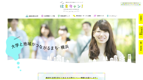 横浜市(近郊含む)の30大学の情報や魅力を紹介するwebサイト、「はまキャン!」を制作させていただきました。