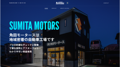 横浜市磯子区にある地域密着の⾃動⾞⼯場、⾓⽥モータース様のホームページを制作させていただきました。